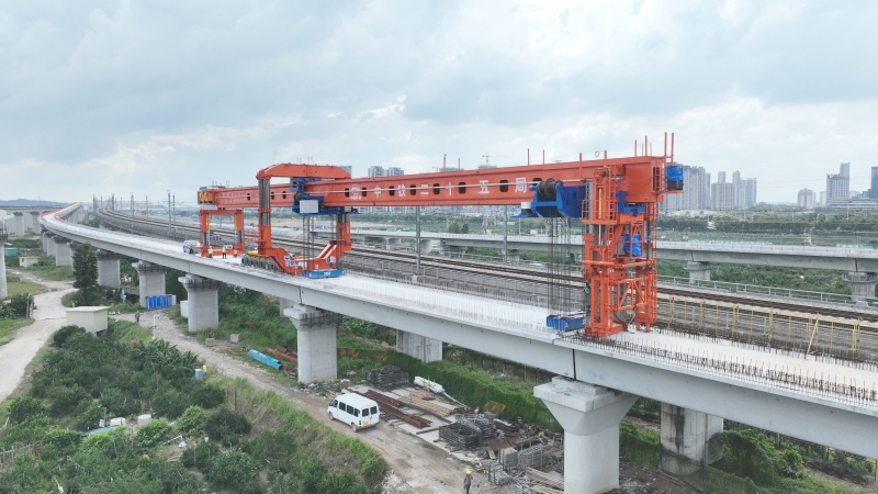 深江鐵路起自新建深圳西麗站,終至江湛鐵路既有江門站,其中深圳西麗至廣州南沙段設計時速為200公里,南沙至江門段設計時速為250公里。集團公司承建的深江鐵路12標江門制梁場,承擔了江門段、中山段共計545榀簡支箱梁的制運架任務。