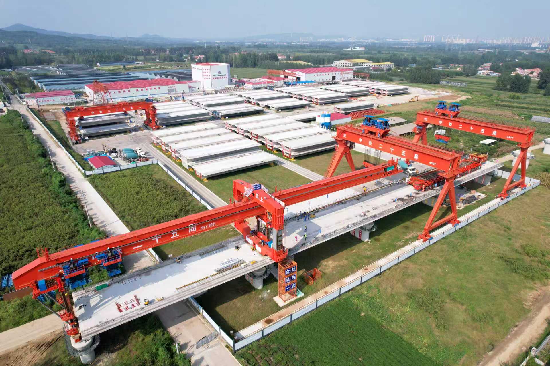 “本次箱梁架設我們還采用SHDJ900-32B新型架橋機,該設備具備大坡度、小曲線箱梁架設能力,能夠單雙線共用,為后續556孔箱梁的安全、高效架設提供了關鍵裝備支撐。”該項目梁場負責人袁勤兵介紹道。